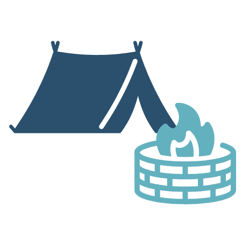 Build a nature experience with a fire pit, gazebo, camping with semi-permanent tenting, out-house with compost toilet, and picnic area completion
