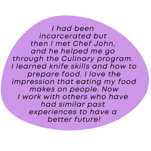 Our free Culinary Training Program helps underemployed, unemployed, and at-risk individuals build real job skills for a career in the culinary industry. Students train side-by-side with our staff, gaining hands-on experience and mentorship while also helping prepare meals for the community.